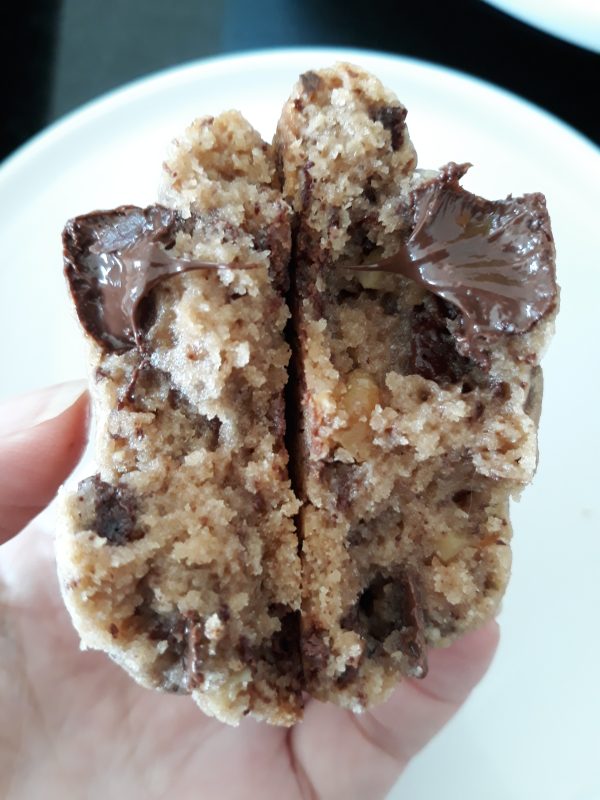 Cookies grandes, crocantes no exterior mas macias no interior.