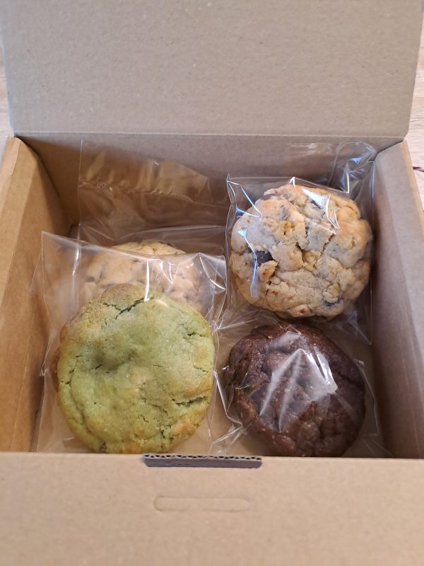 Cada cookie pesa cerca de 100 a 120g e cada uma será embalada individualmente para manter as suas caracteristicas o máximo de tempo possível.
