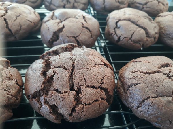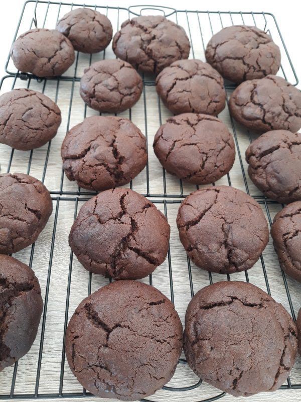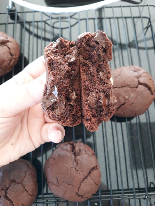 Cookies grandes, crocantes no exterior mas macias no interior.